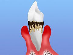 歯を支える顎の骨「歯槽骨(しそうこつ)」が大きく溶かされると、歯を支えきれず、歯がグラグラしてきます。また歯ぐきが下がり、膿が出るほどまでに進行した状態を「歯槽膿漏(しそうのうろう)」と呼びます。放置すると、痛みなどないうちに歯が抜け落ちてしまうこともあります。